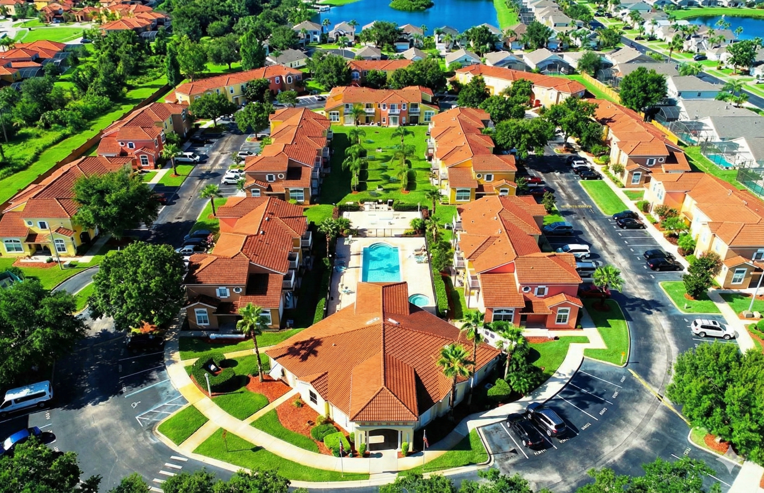 A tranquil gated vacation home community in Kissimmee built around scenic lakes and offering spacious private villas with resort-style amenities like a clubhouse, community pool, fitness facilities, sports courts and nature trails, all just minutes from Disney